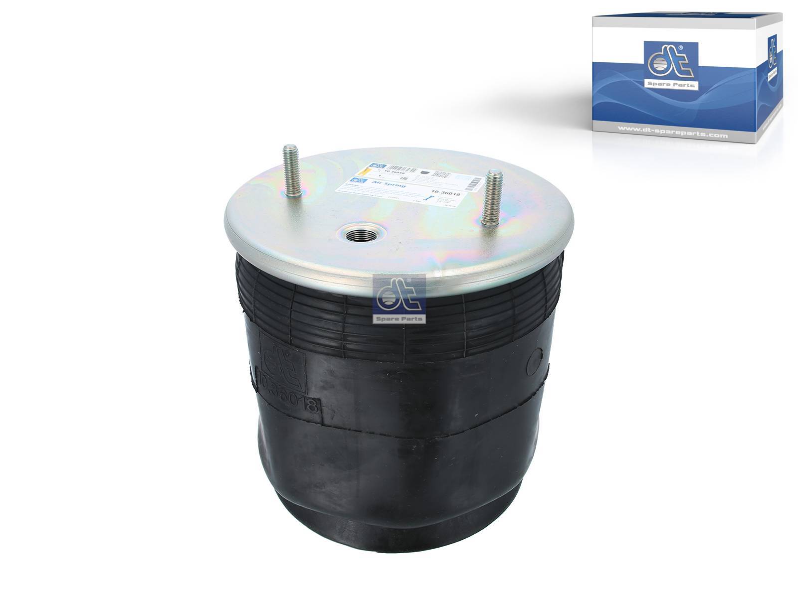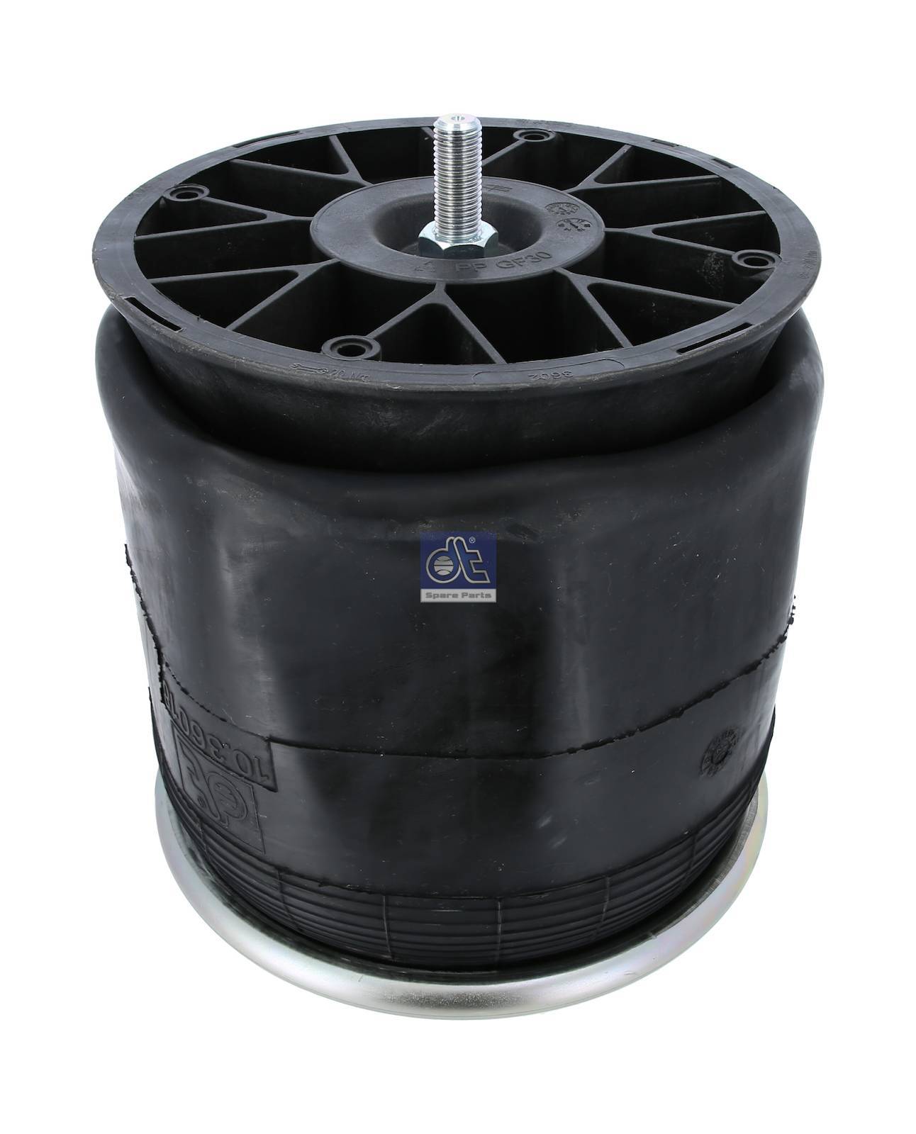 Description : DT Spare Parts 10.36018 Air spring, with plastic piston, D: 260 mm, Dmax: 330 mm, M12 x 1,75, M22 x 1,5, L: 370 mm