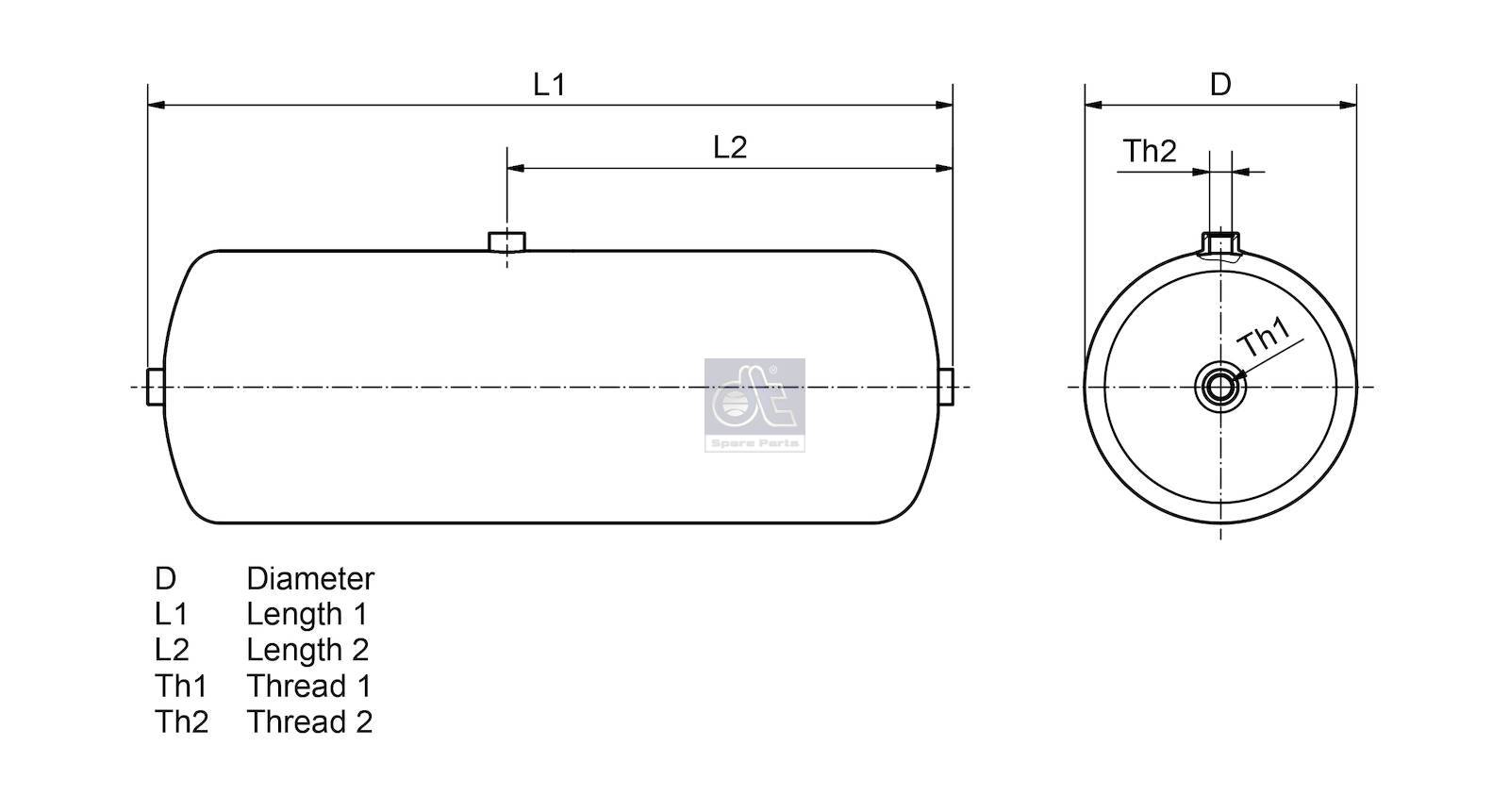 Description : DT Spare Parts 1.18398 Air tank, 15 l, D: 206 mm, M22 x 1,5, L: 520 mm, 14.5 bar