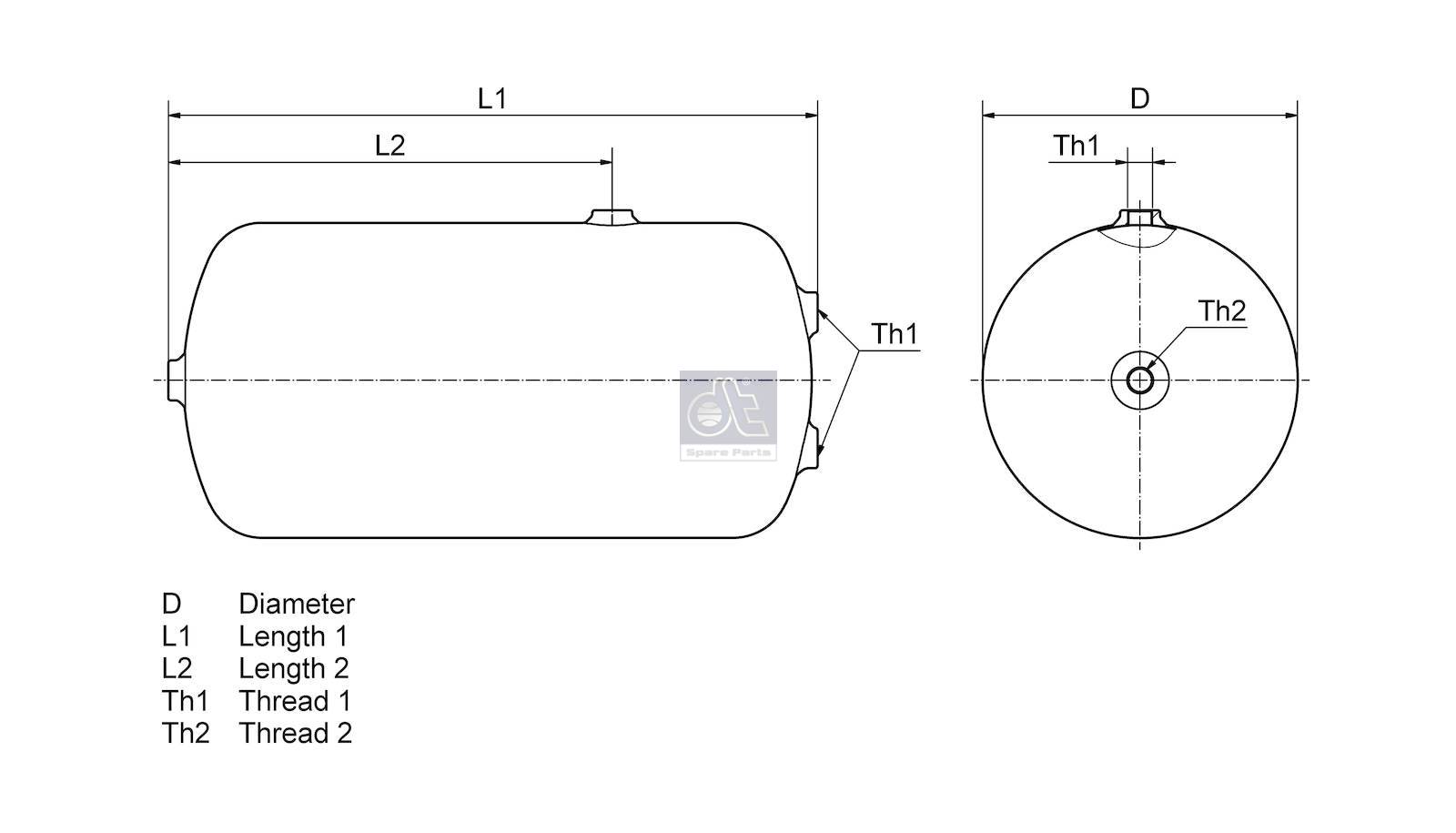Description : DT Spare Parts 4.67695 Air tank, 40 l, D: 246 mm, M22 x 1,5, L: 927 mm, 15.5 bar