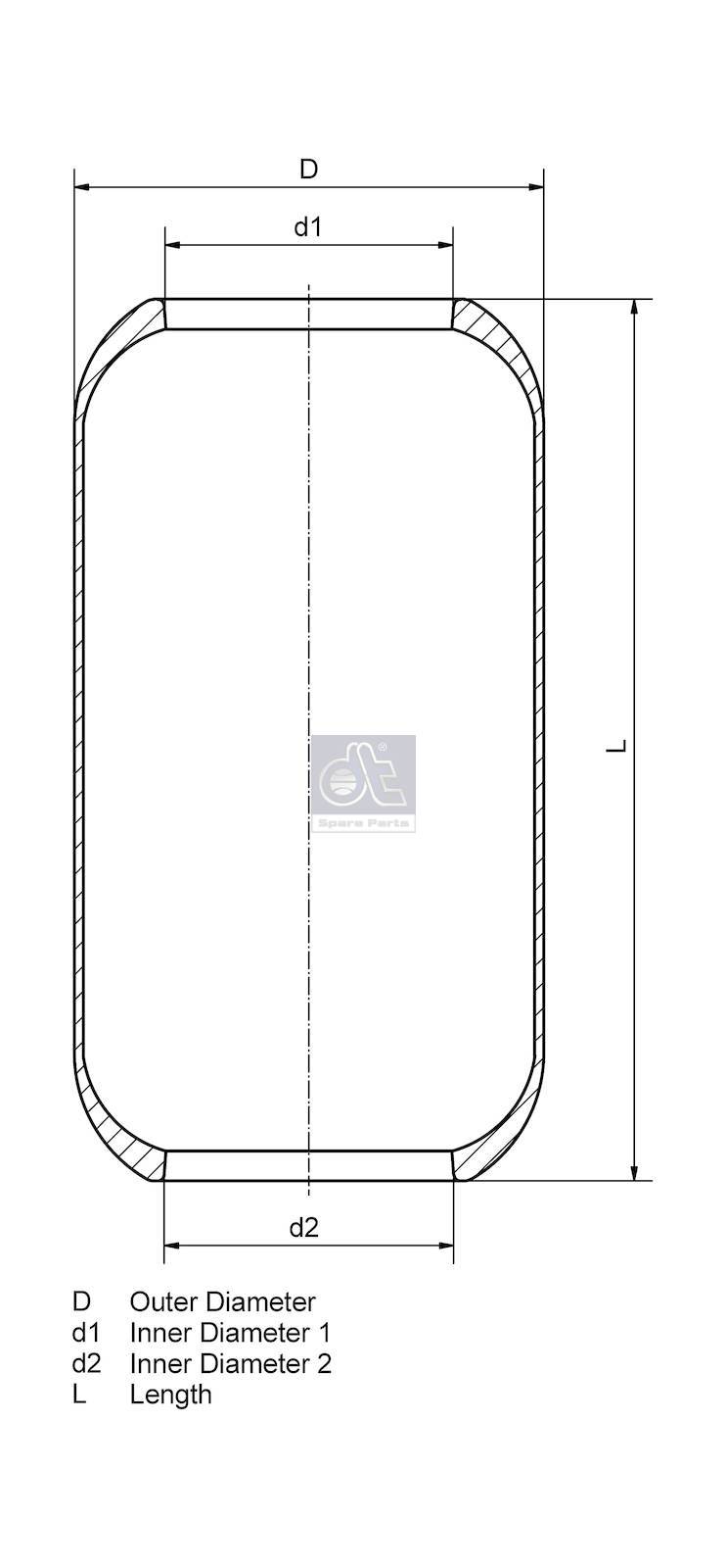 Description : DT Spare Parts 4.80376 Air spring, without piston, d: 131 mm, D1: 240 mm, D2: 155 mm, M16 x 1,5, M24 x 1,5, L: 445 mm