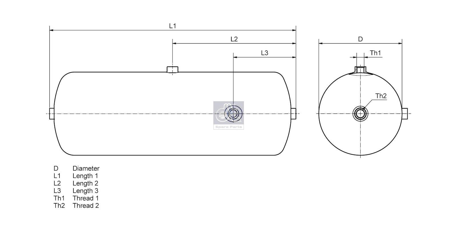 Description : DT Spare Parts 5.70050 Air tank, 36 l, D: 300 mm, M22 x 1,5, L: 609 mm, 12.5 bar